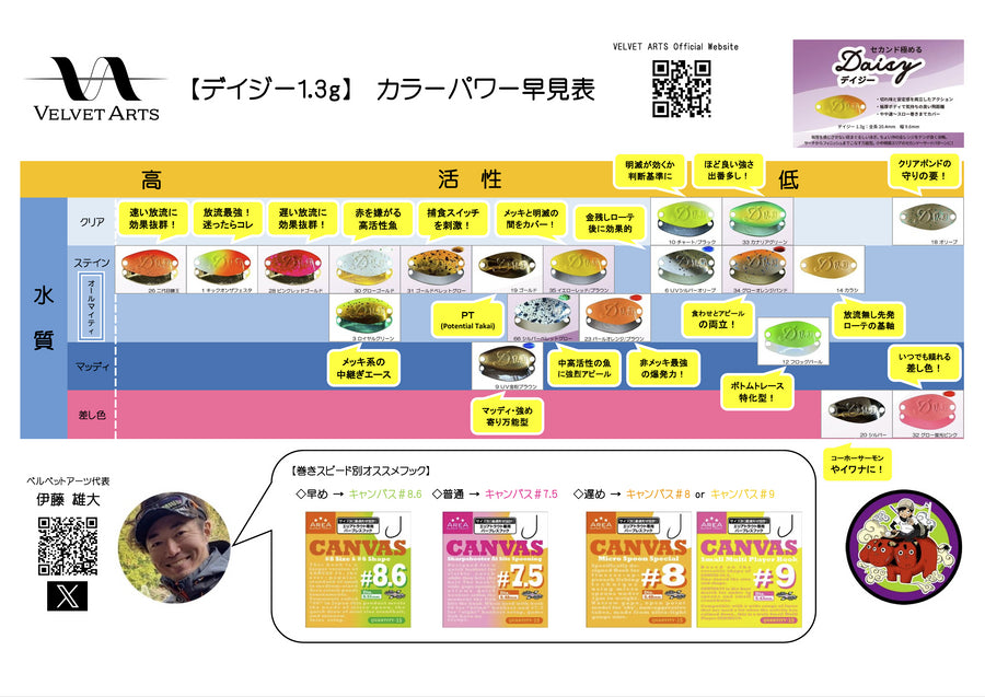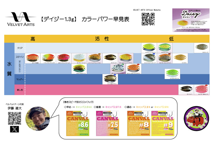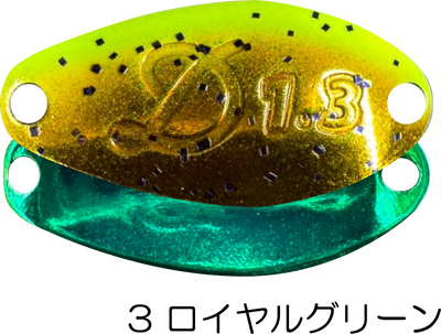 放流魚をクギ付けにするイレギュラーアクションで「マイクロスプーンでの放流魚獲り」の定番となったデイジー0.8g。その小型シルエットはそのままに板厚をUPし、ロングキャストと中層〜ディープレンジの攻略を可能にしたのがデイジー1.3gです。