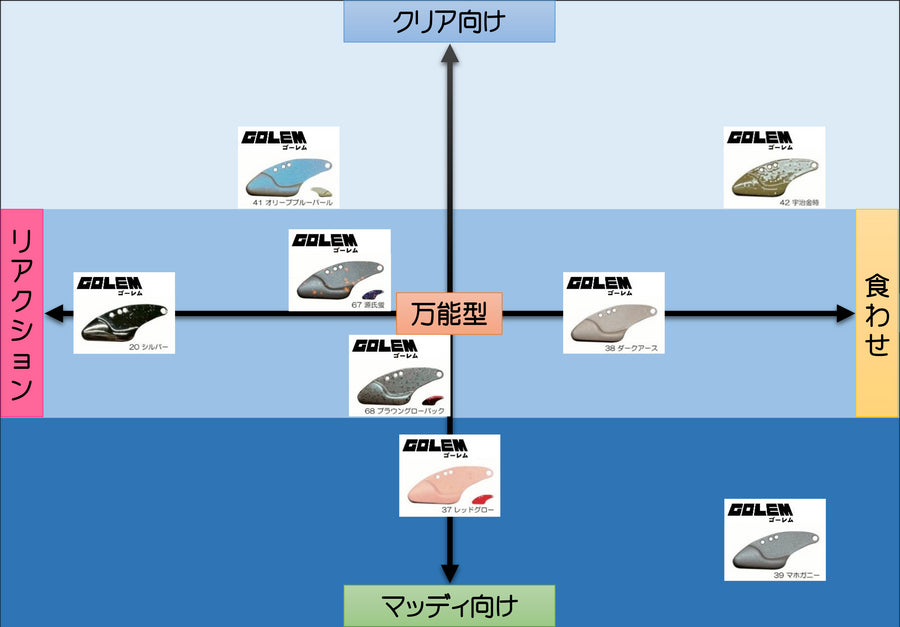 ボトムの定番カラーを網羅した厳選8色。食わせ~リアクションまで隙の無いラインナップ。(画像クリックで各カラー紹介ページへ移動します)